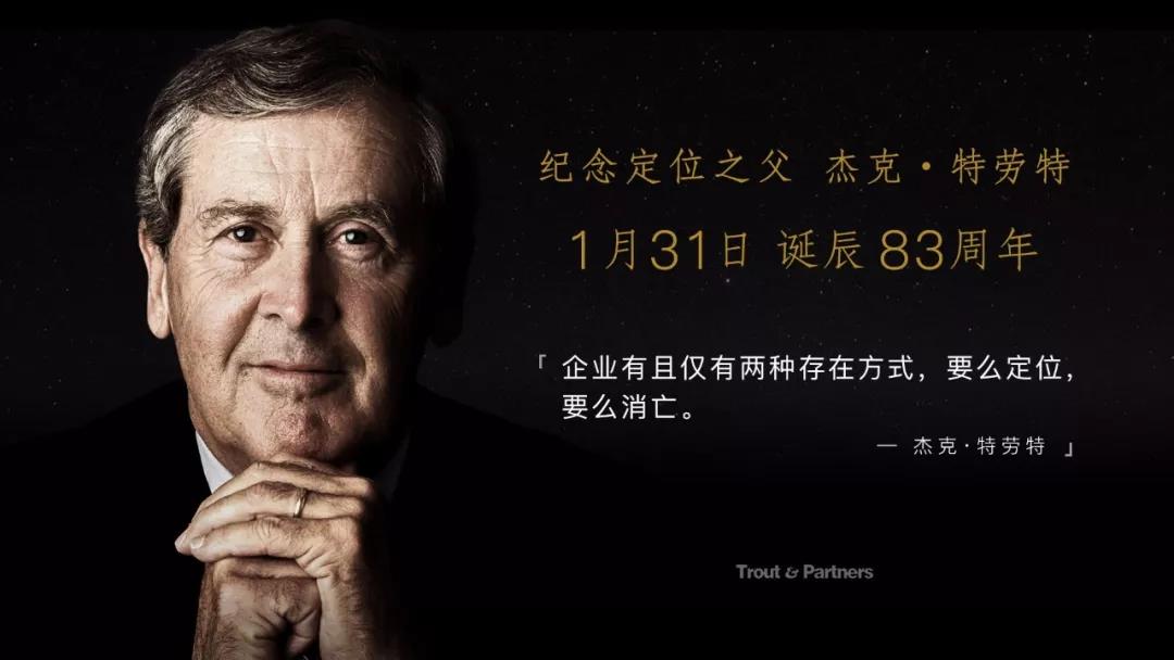 2018年1月31日,定位理论创始人杰克·特劳特先生83周年诞辰纪念日。